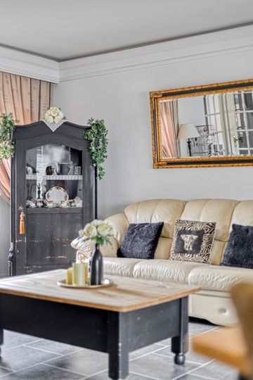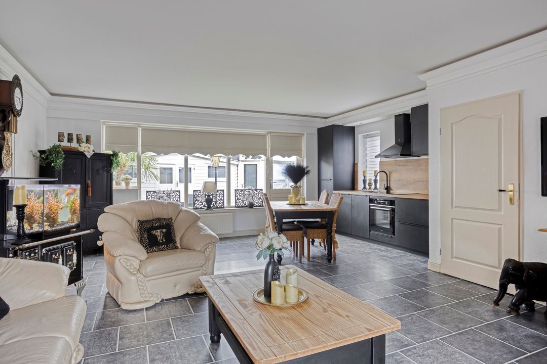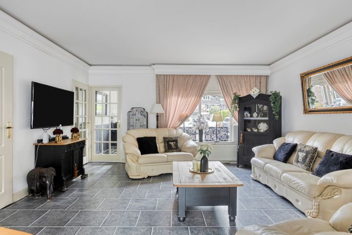 * Royale woonkamer (ca. 7.06m x 4.81m) met deur naar de achtertuin.
