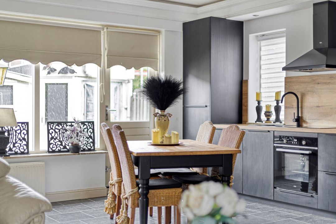 * In de woonkamer ligt een laminaatvloer.