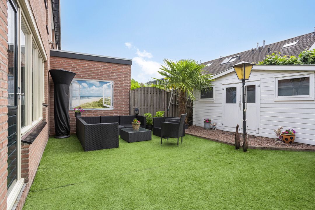 * Het riante tuinhuis (afm. 4.66m x 2.85m) is voorzien van elektra, keukenblok en verwarming. Uitstekend geschikt voor werken aan huis (bijv. als kantoor).