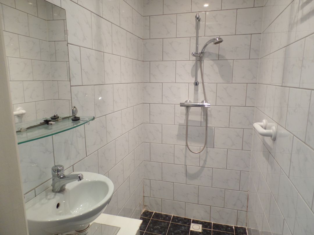 * Doucheruimte met douche en wastafel.