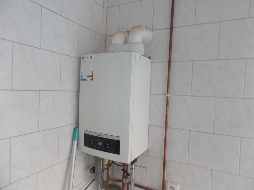 * De gas cv-combiketel (Nefit, 2019) is opgesteld in de keuken.