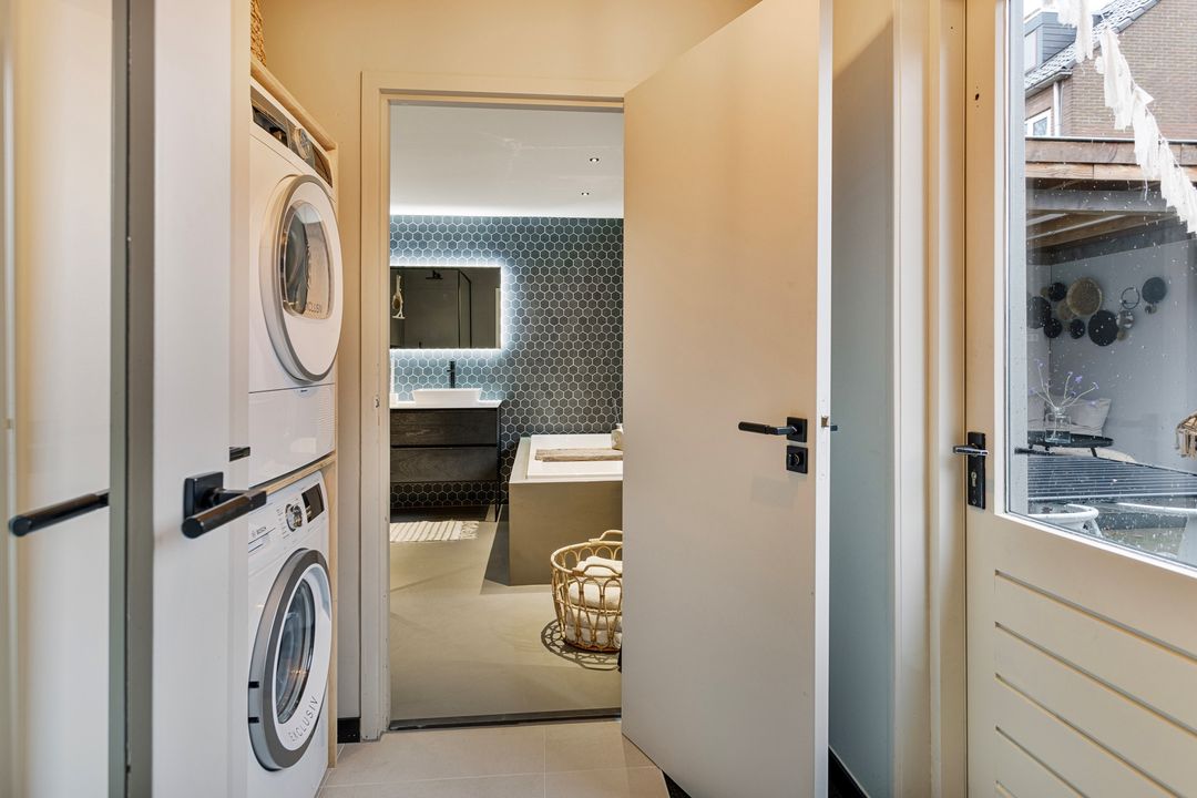 * Bijkeuken (afm. 3.32 x 2.50m) met opstelplaats van de wasautomaat, wasdroger, gas cv-combiketel (type Tzerra ACE 39C