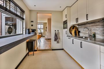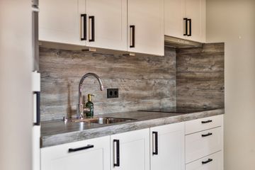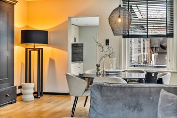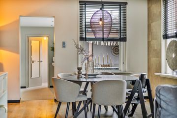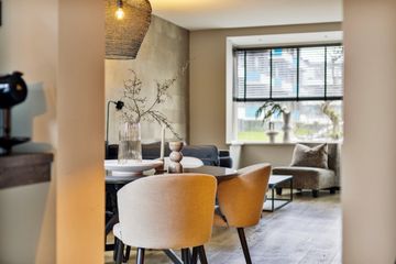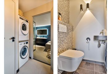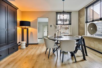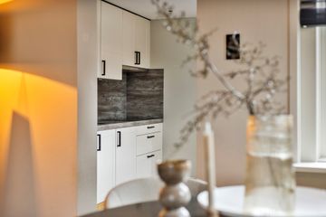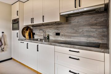 * Keuken (afm. ca. 3.32 x 2.50m) met inbouwkeuken en voorzien van o.a. inductie kookplaat, combi-oven/magnetron, vaatwasser en koelkast.