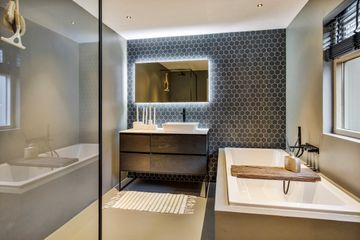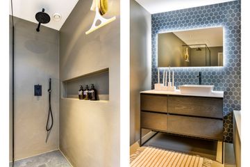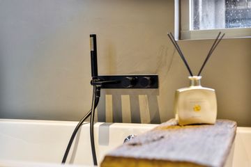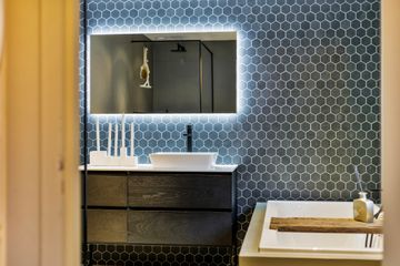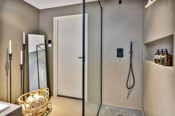 * Ruime badkamer (3.17 x 2.50m) met wastafel + badkamer meubel, royaal 2-persoons ligbad, inloopdouche met stortdouche.