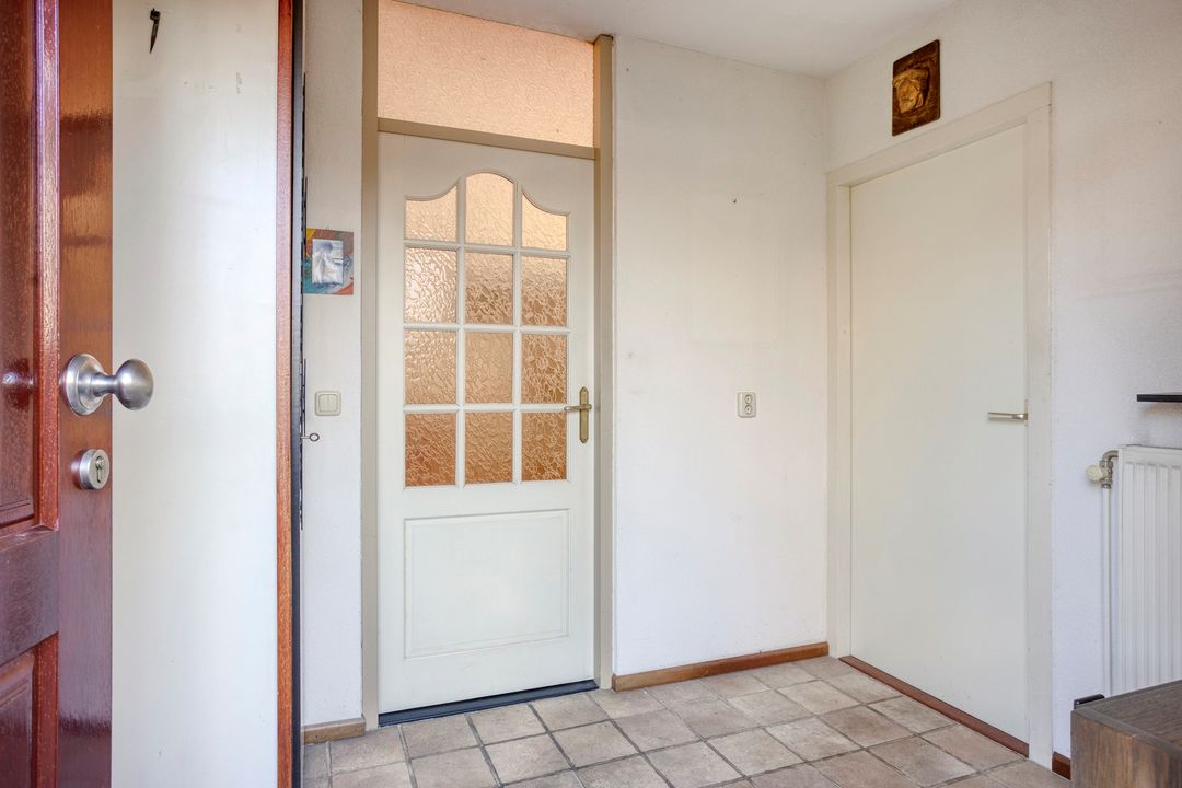 * Entree in de hal met meterkast (6-groepen met aardlekschakelaar) en toegang tot de inpandige berging.