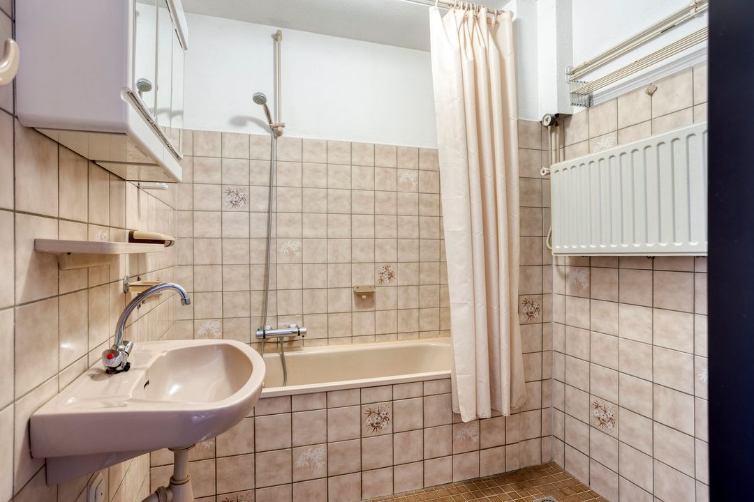 * Badkamer (afm. 2.10m x 1.95m) met ligbad en wastafel