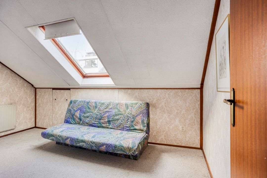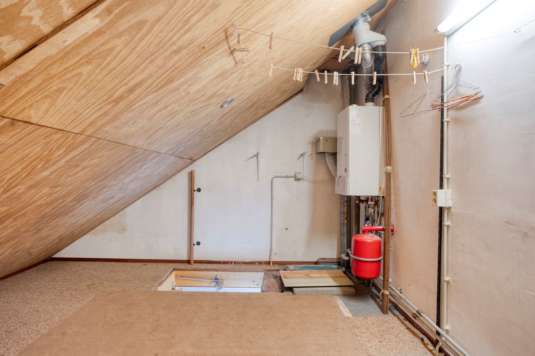 * Ruime zolderberging, bereikbaar via houten uitschuifbare trap, met opstelplaats van de gas cv-combiketel (Bosch HR, bouwjaar 2011).