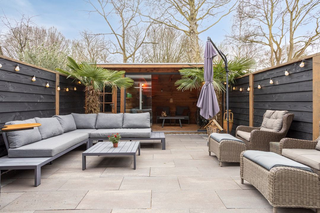 * Naast de berging een sfeervolle, overdekte lounge ruimte.